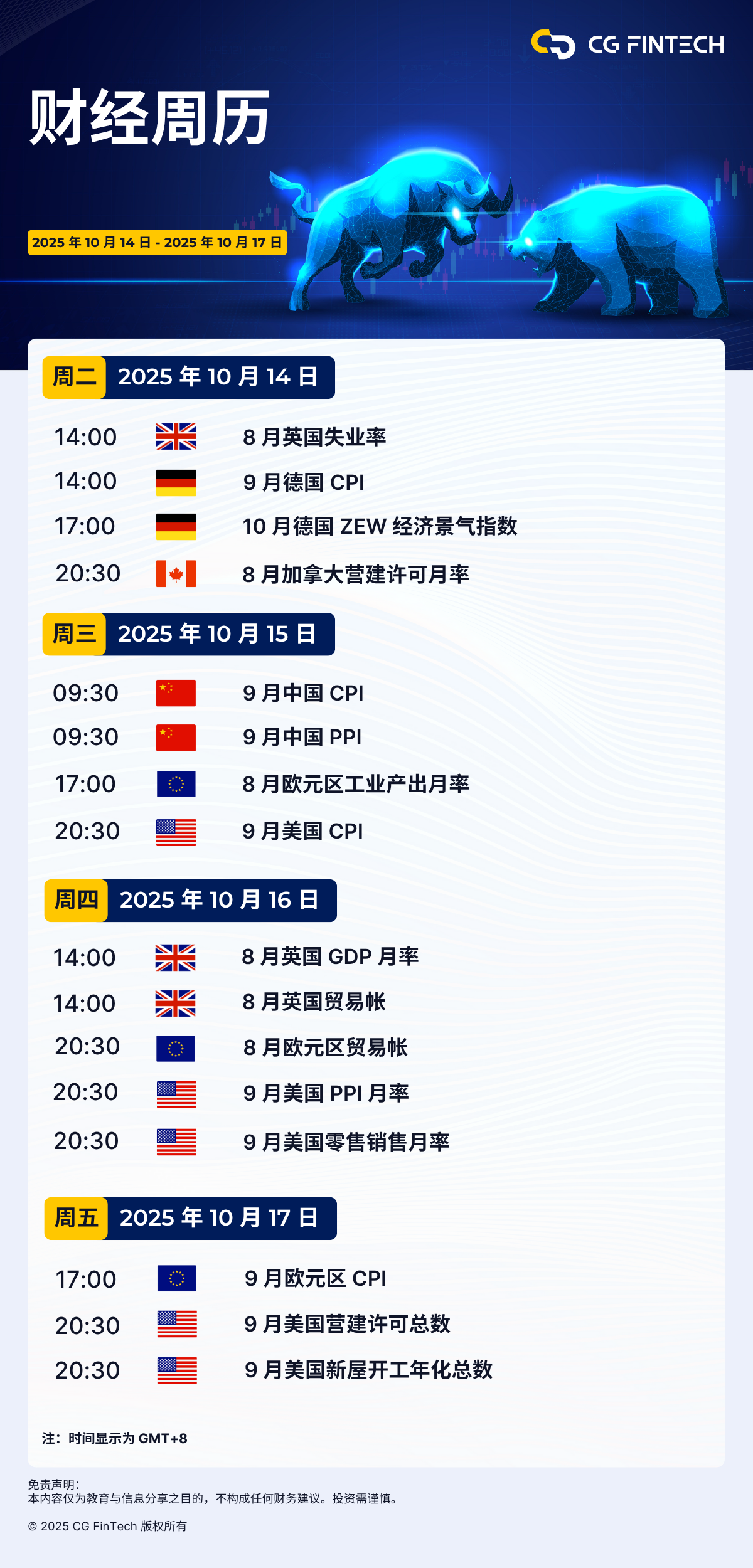 财经周历 | 2025 年 10 月 14 日 – 2025 年 10 月 17 日