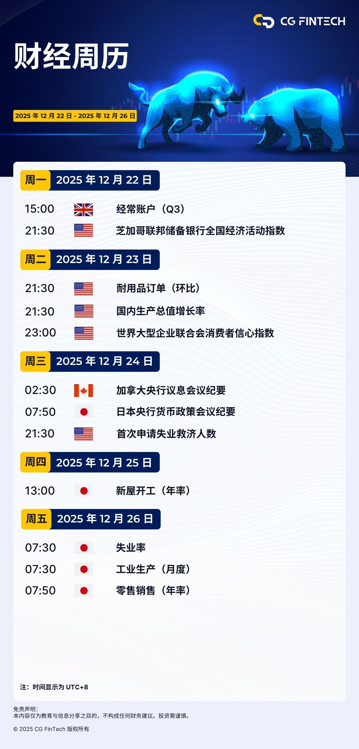 财经周历 | 2025 年 12 月 22 日 – 2025 年 12 月 26 日