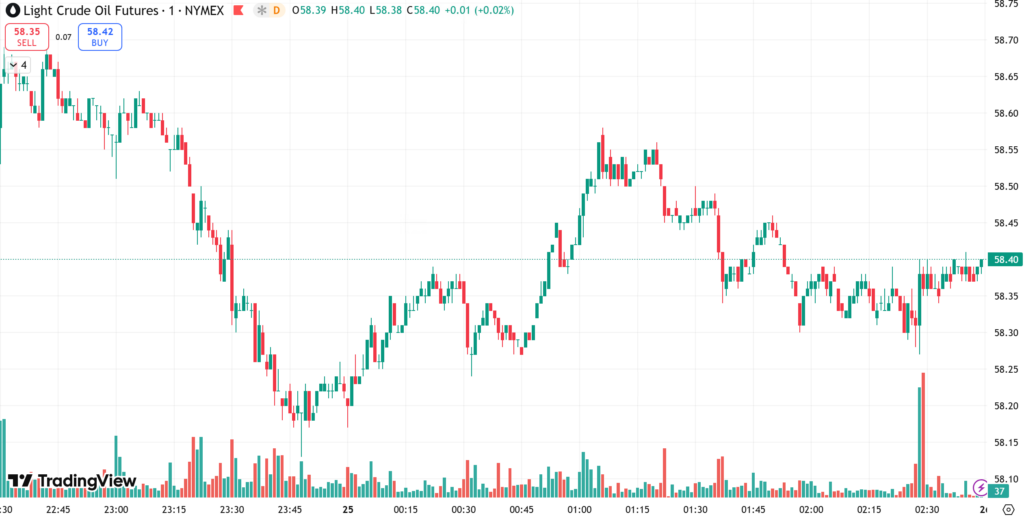 油价周三收盘微跌,布伦特原油下跌 0.2%,收于每桶 62.24 美元;美原油微跌 0.05%,收于 58.35 美元。