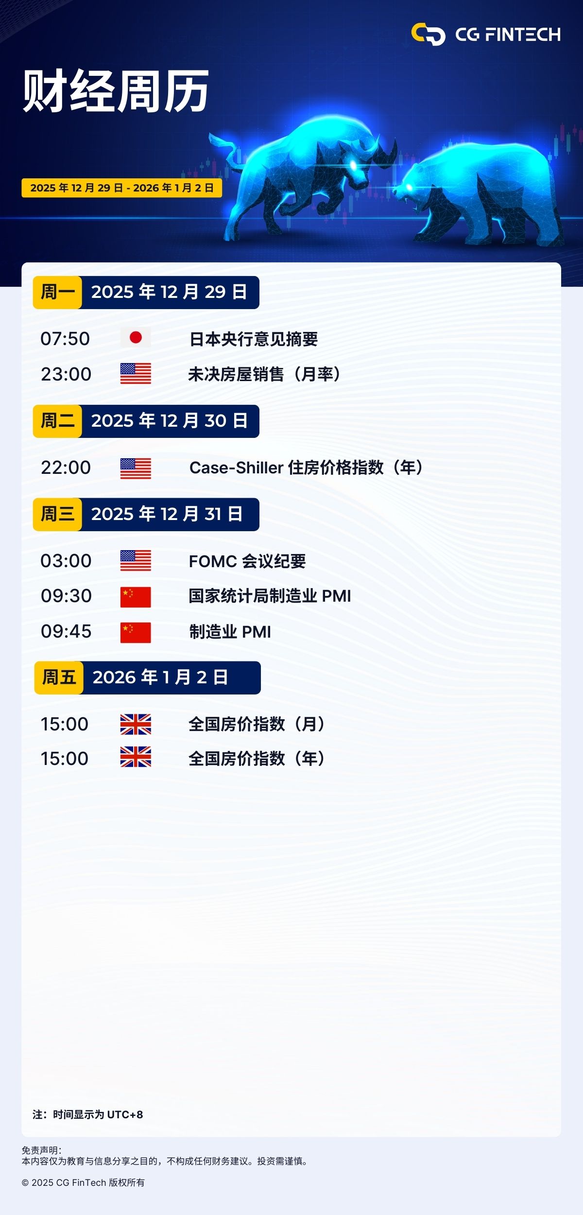 财经周历 | 2025 年 12 月 29 日 – 2026 年 1 月 2 日