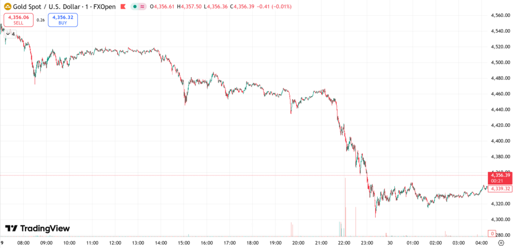 现货黄金周一大跌 4.5%,报每盎司 4330.79 美元;美国2月期金下跌 4.6%,报 4343.60 美元。铂金与白银跌幅更为显著,现货铂金重挫 14.5% 至 2096.53 美元,现货白银急跌 9.5%至 71.66 美元,现货钯金也暴跌 15.9% 至 1617.47 美元。所有贵金属均在近期攀升至历史或多年高位后出现回调。